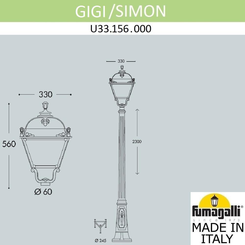Садово-парковый фонарь FUMAGALLI GIGI/SIMON черный, прозрачный U33.156.000.AXH27