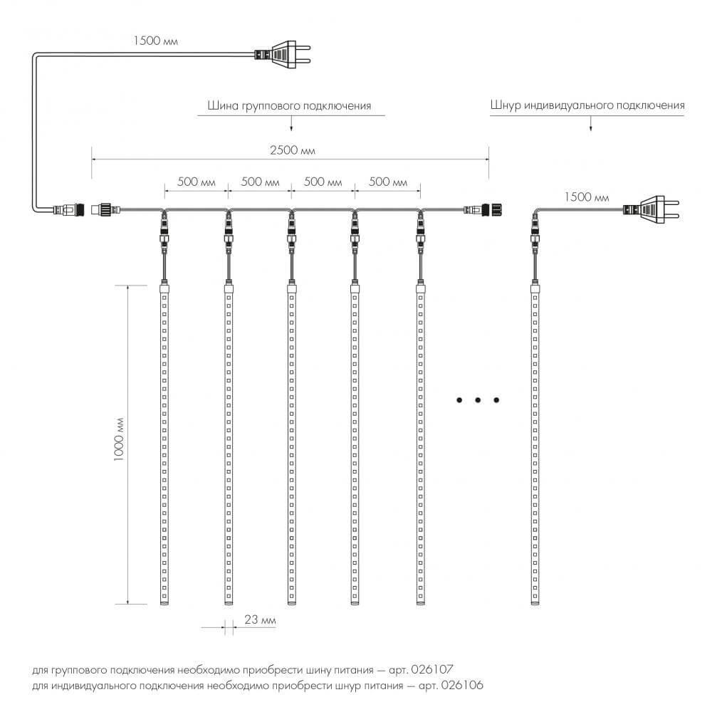 Уличная светодиодная гирлянда Ardecoled тающая сосулька 230V белый ARD-Icefall-Classic-D23-1000-Clear-96Led-Live White 026103